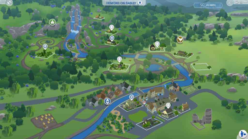 The Low Down: This cottage countryside from the “Cottage Living” expansion pack has three neighborhoods with 12 lots, a community space and stalls.
