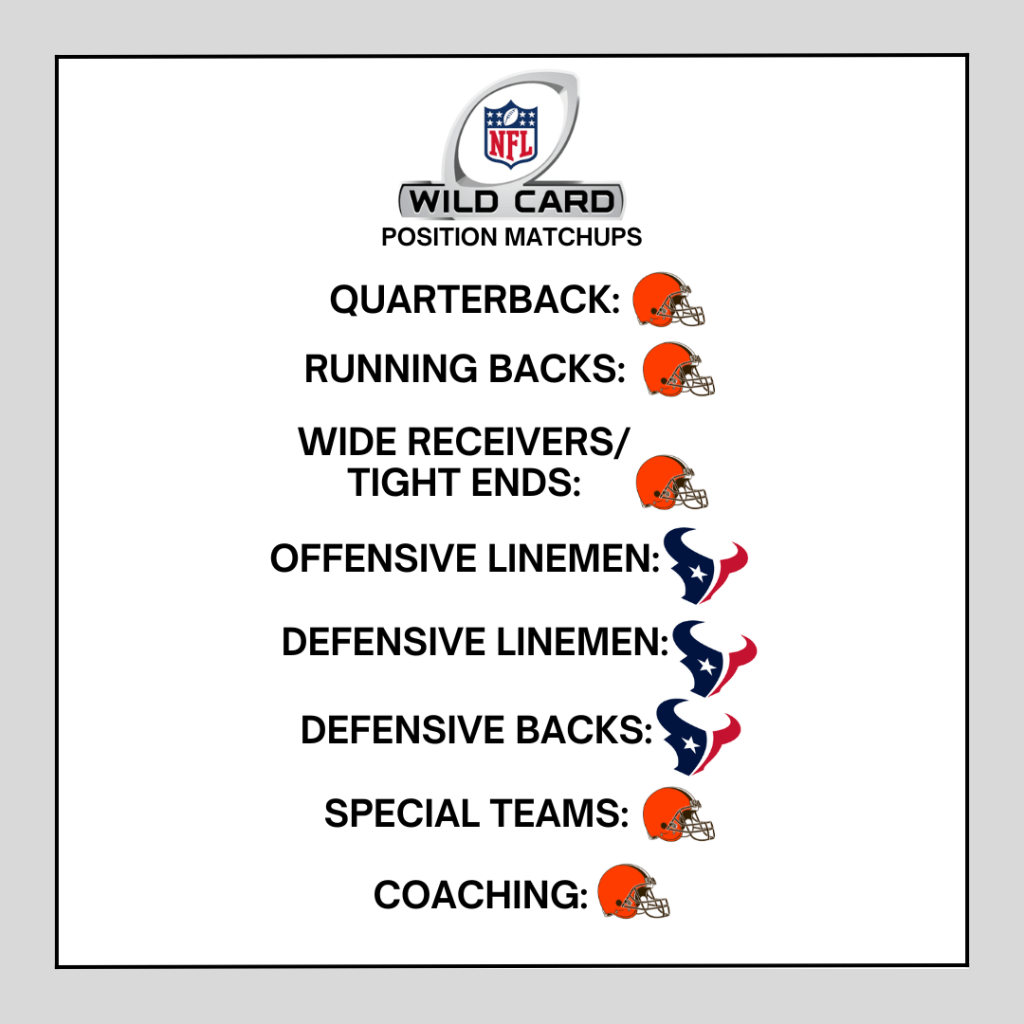 How do each of the matchups fair? Take a look my picks for the better position matchups in each Wildcard Weekend game.