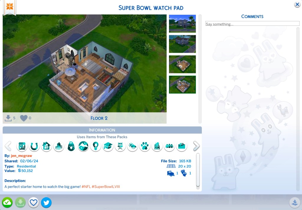 To gear up for Super Bowl LVIII, even the Sims 4 community is taking their creativity to new heights. Sims 4 is a simulation game that came out in 2014 where players get to control the “Sims” in any way they see fit. Some also like to upload their Sim builds to the public Sims Gallery for others to download and play with.