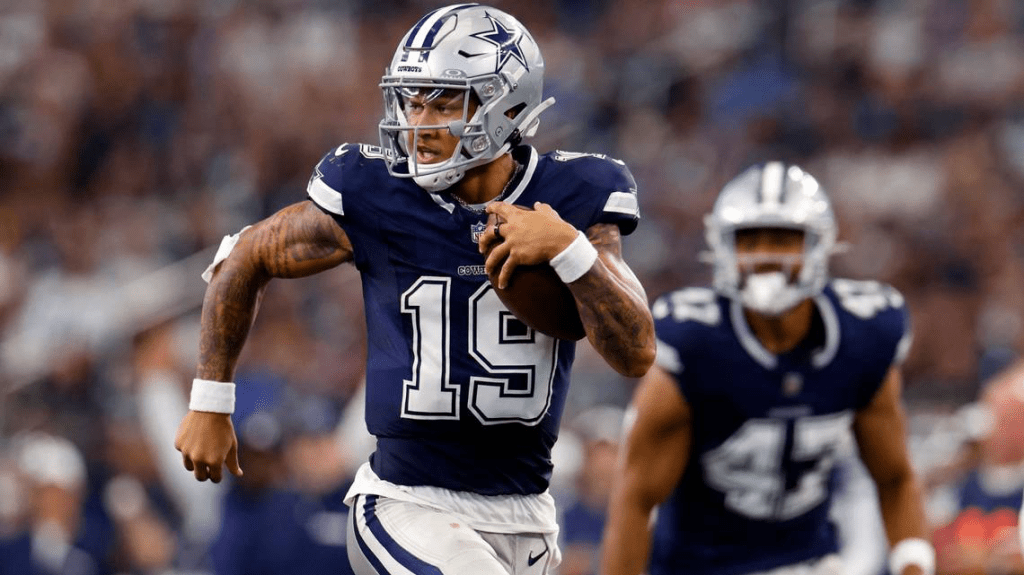 Quarterback TREY LANCE of the Dallas Cowboys led the NFL with 662 passing yards and 168 rushing yards, and New Orleans wide receiver A.T. PERRY led the league in receiving yards with 176.