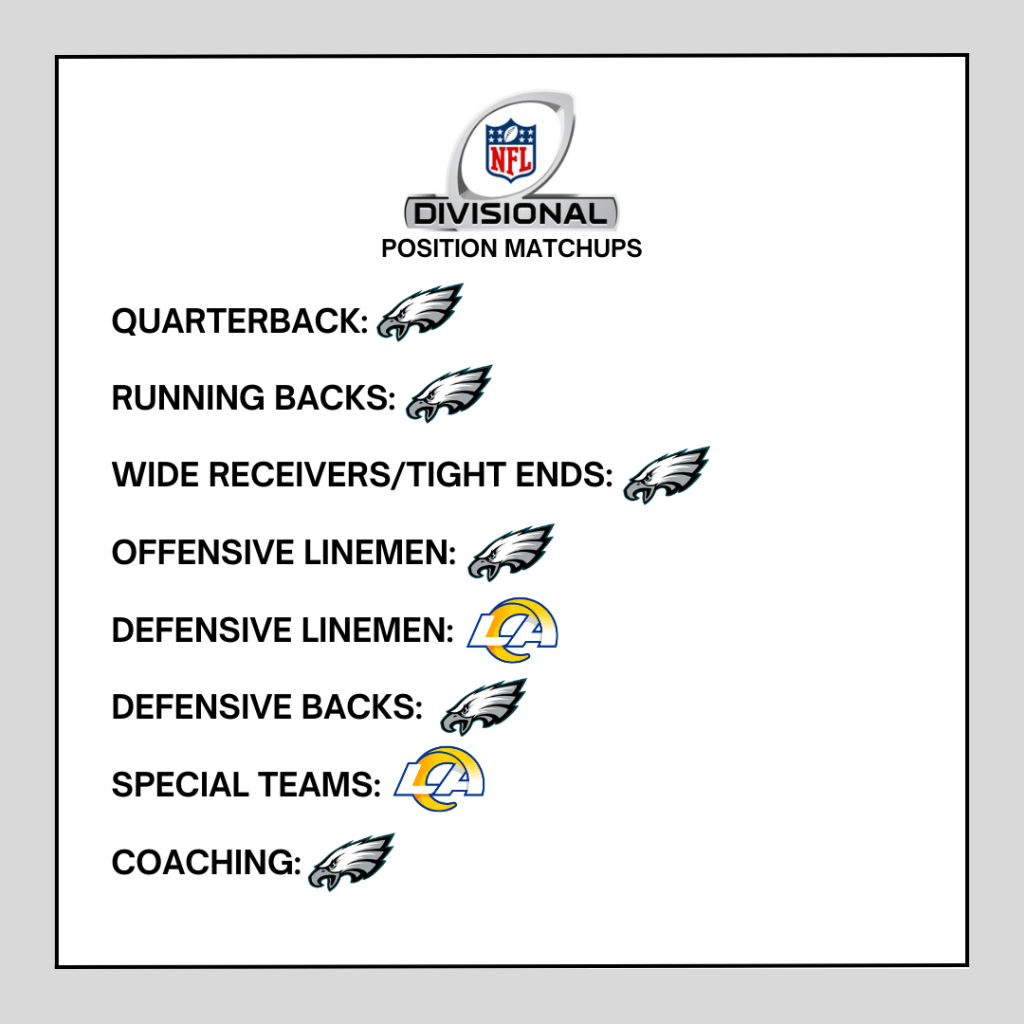 Here’s how each position matches up between the Los Angeles Rams and Philadelphia Eagles.