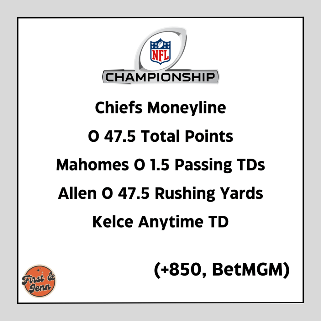 Need some betting inspo for the AFC Championship? Check out these three parlays for Sunday’s action when the Kansas City Chiefs host the Buffalo Bills in the AFC Championship.